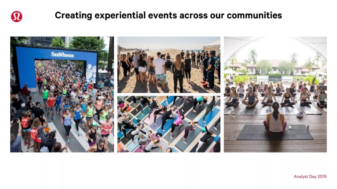 2018 年,lululemon 在全球各地举办超过 4000 场线下活动,比较大型的有: