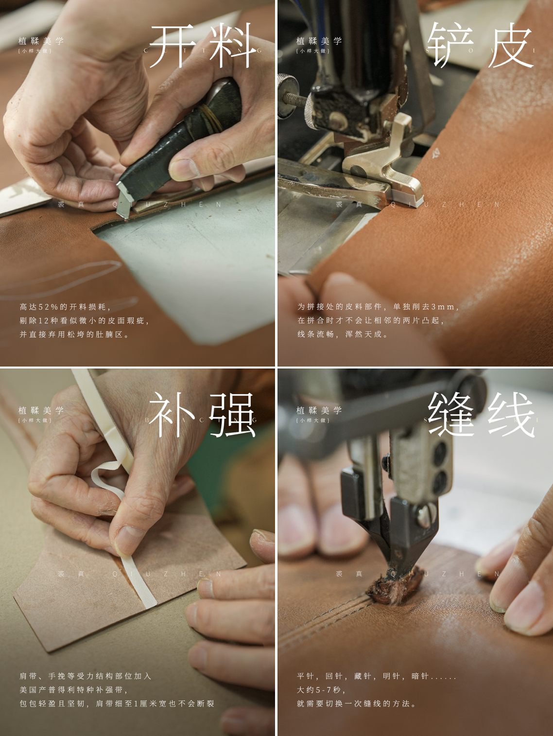 实际上,裘真的品牌根基始终是水染植鞣皮的工艺与技术——在裘真,所有可能性都始于一张优质皮料。