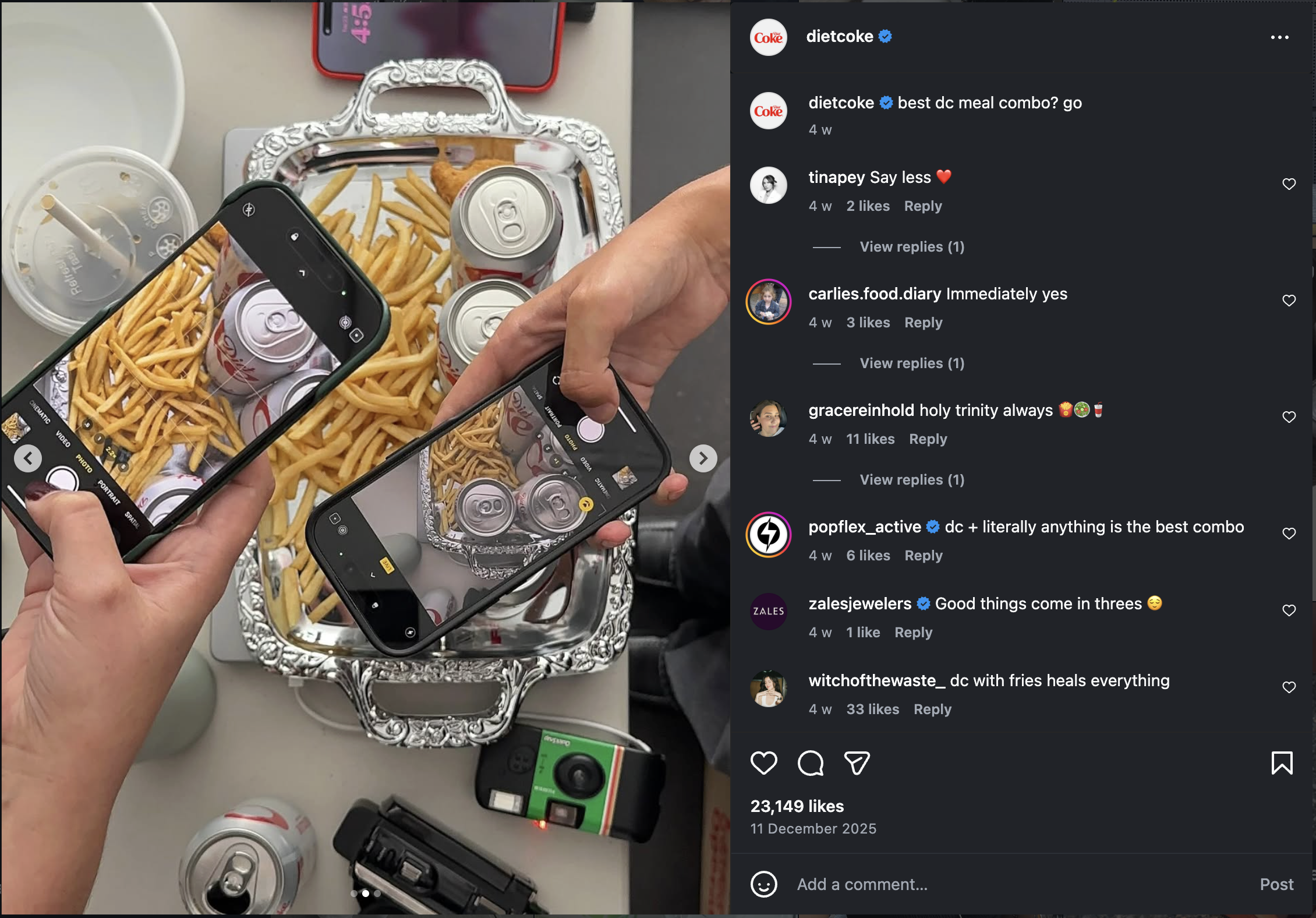 拥有 24 万 Instagram 粉丝的 Diet Coke 十分擅长通过强「生活感」的内容拉近与消费者的距离。 账号中的内容风格十分「反商业」,有些甚至在构图、灯光、像素等维度与传统意义上「好看」的内容背道而驰,但这种图片给人带来的复古、真实、贴近生活的感受,却能引发强烈的共鸣。