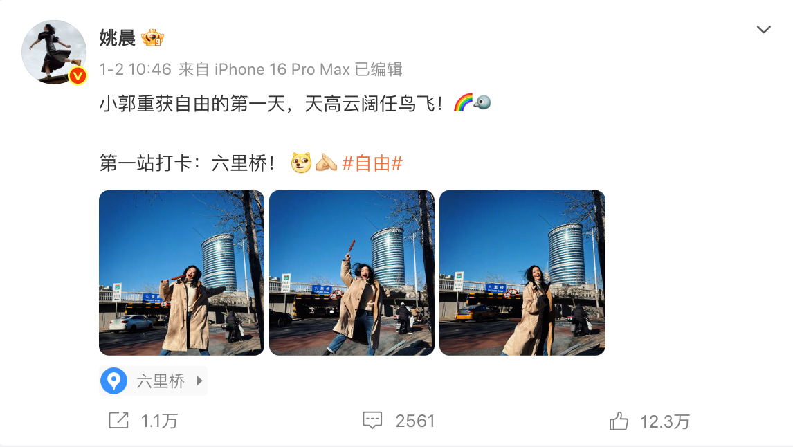 当天,演员姚晨打卡重游故地引发热议,#郭芙蓉自由了 话题迅速冲上热搜。