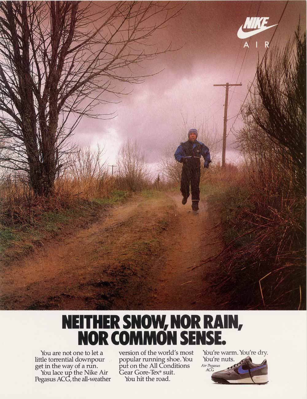 「无畏严雪,无惧暴雨,亦无需常理。」Air Pegasus ACG 鞋款的海报