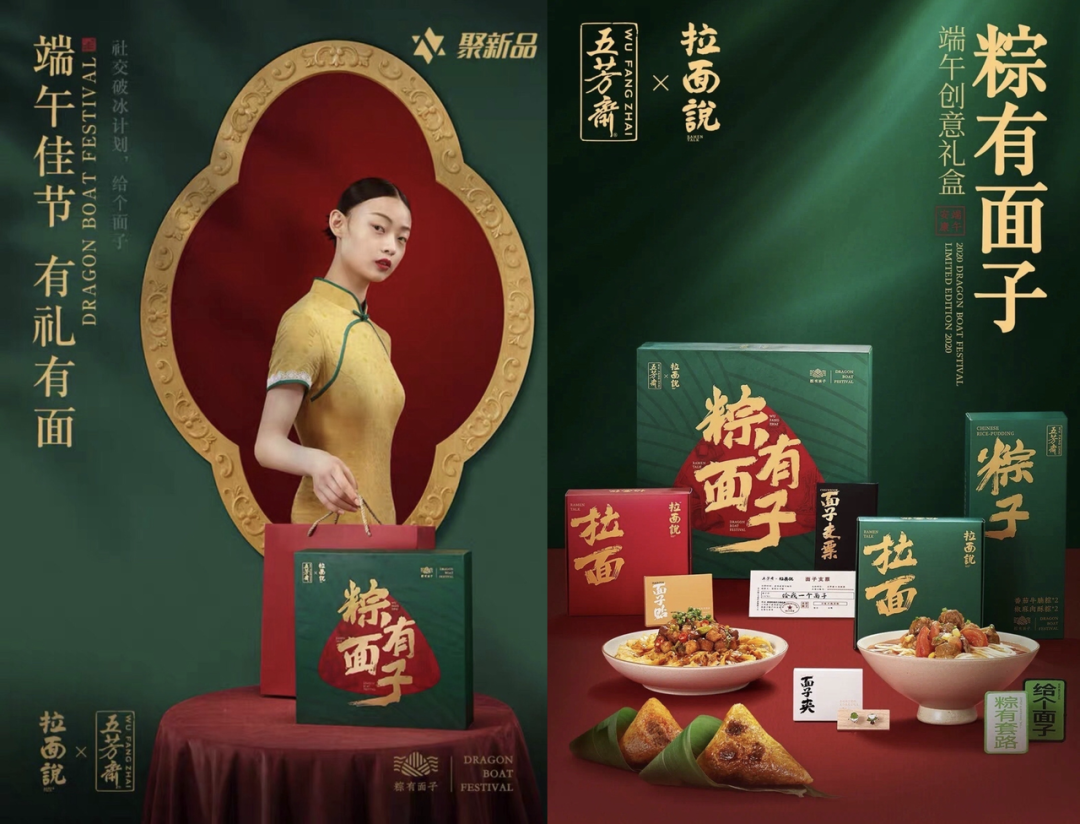 近日,拉面说与五芳斋联名推出「粽有面子」礼盒。该礼盒以红绿色搭配为主,走复古国潮风,主打年轻人的送礼和社交场景。