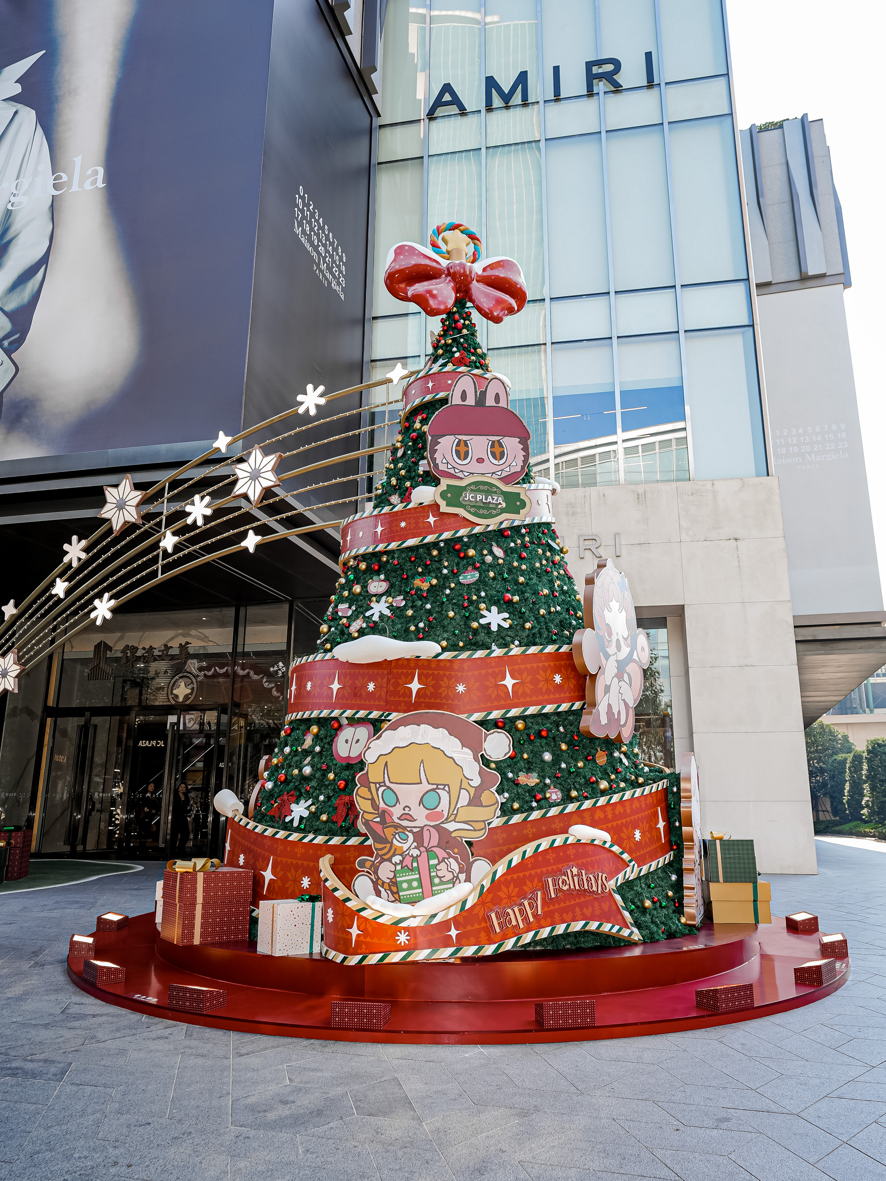 • 站点 ① 绮愿星光树(西侧外广场):作为入口装置,「绮愿星光树」像是一封送给每位来访者的节日邀请函。星光树以礼物缎带、泡泡玛特可爱小伙伴们层层环绕,满树皆是节日心意与小小惊喜。从这里踏入 JC 冬日星光绮旅,开启一段充满欢乐与美好的冬日旅途。