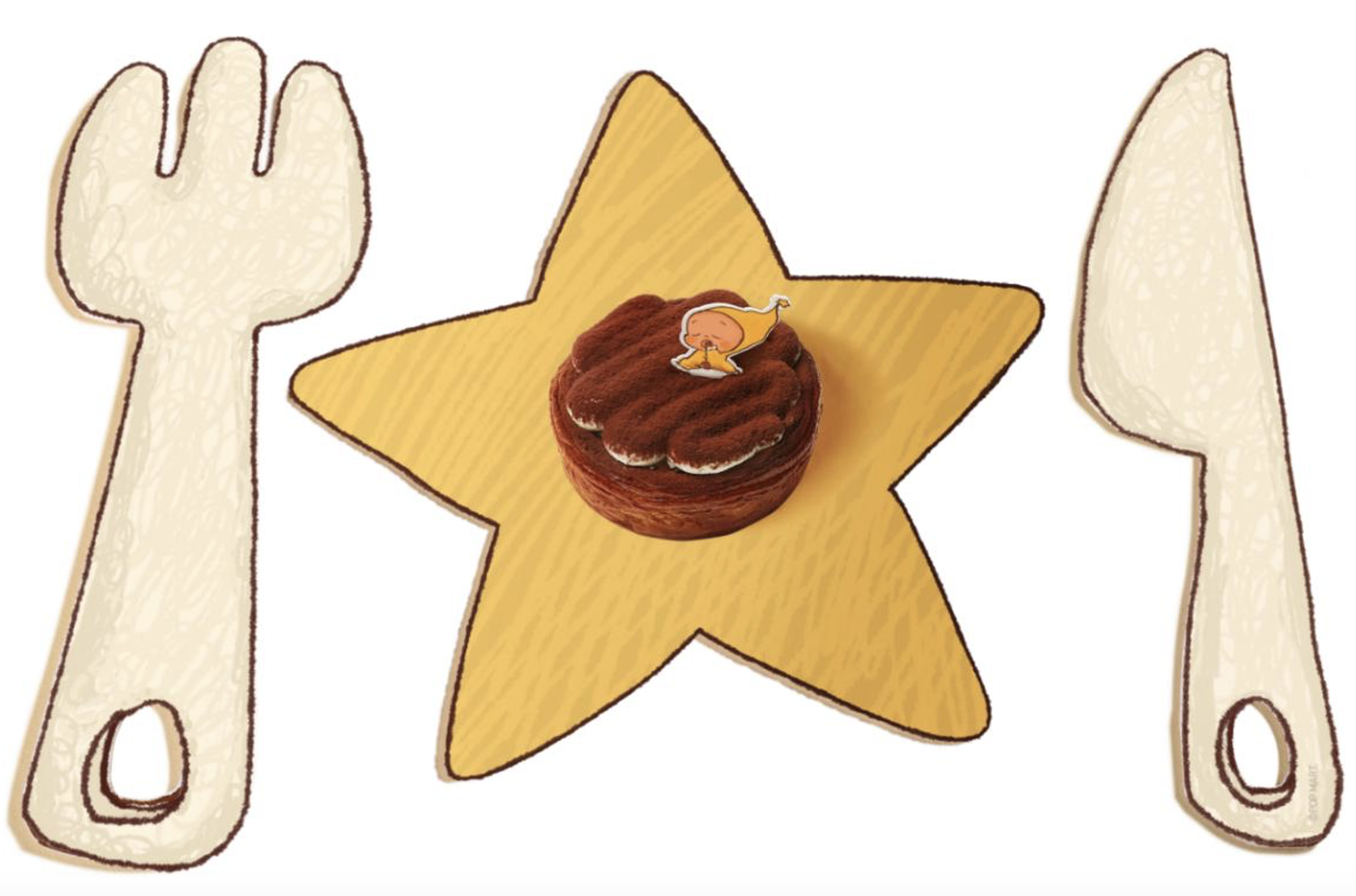 在与喜茶的合作中,星星人 IP 创作者大欣以本次联名为灵感,带来了全新创作。可爱的星星人模仿着喜茶 logo 阿喜形象,扬起侧脸 45° 喝茶,一起参与制作喜茶全新饮品与可颂挞。更有星星人品尝喜茶后,被灵感点亮,把黑糖波波穿在身上,连眼睛都变成了波波的形状。正值节日,围上充满节日氛围的红围巾的星星人,就像提拉米苏一样为冬日添上浪漫与温馨。