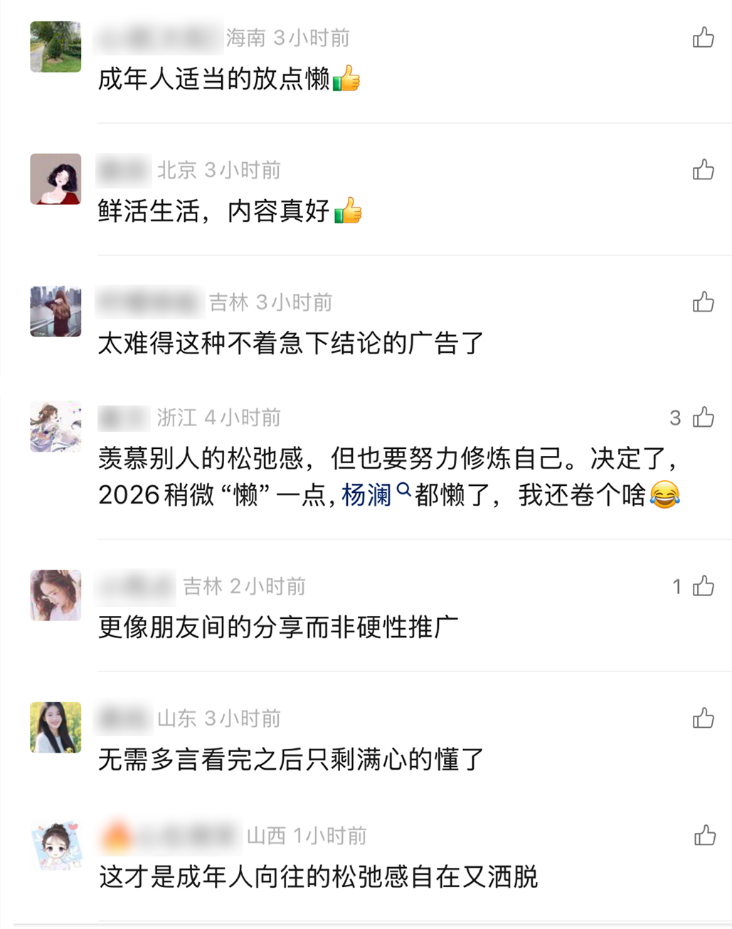 这种反差感和惬意感,让人们看到了杨澜的另一面。一时间,微博、朋友圈都是关于「杨澜变懒」的讨论。「连杨澜都改名杨懒了」「2026 我还有什么要卷的?」