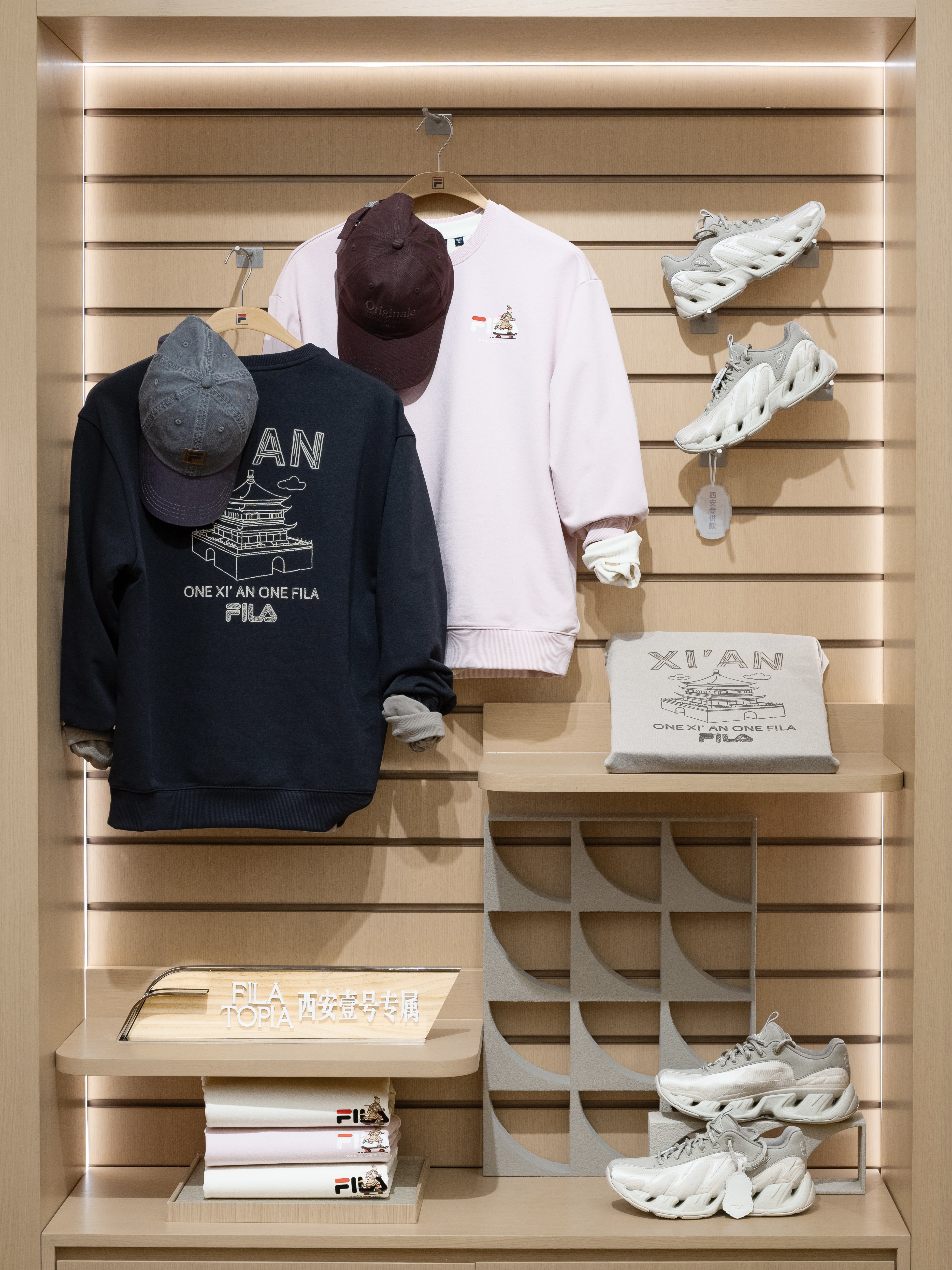 FILA TOPIA 西安壹号独家甄选产品系列: 「秦俑滑行」与「钟楼线影」系列卫衣、 FILA VETTA SAGA 老爹鞋西安赛格限定款