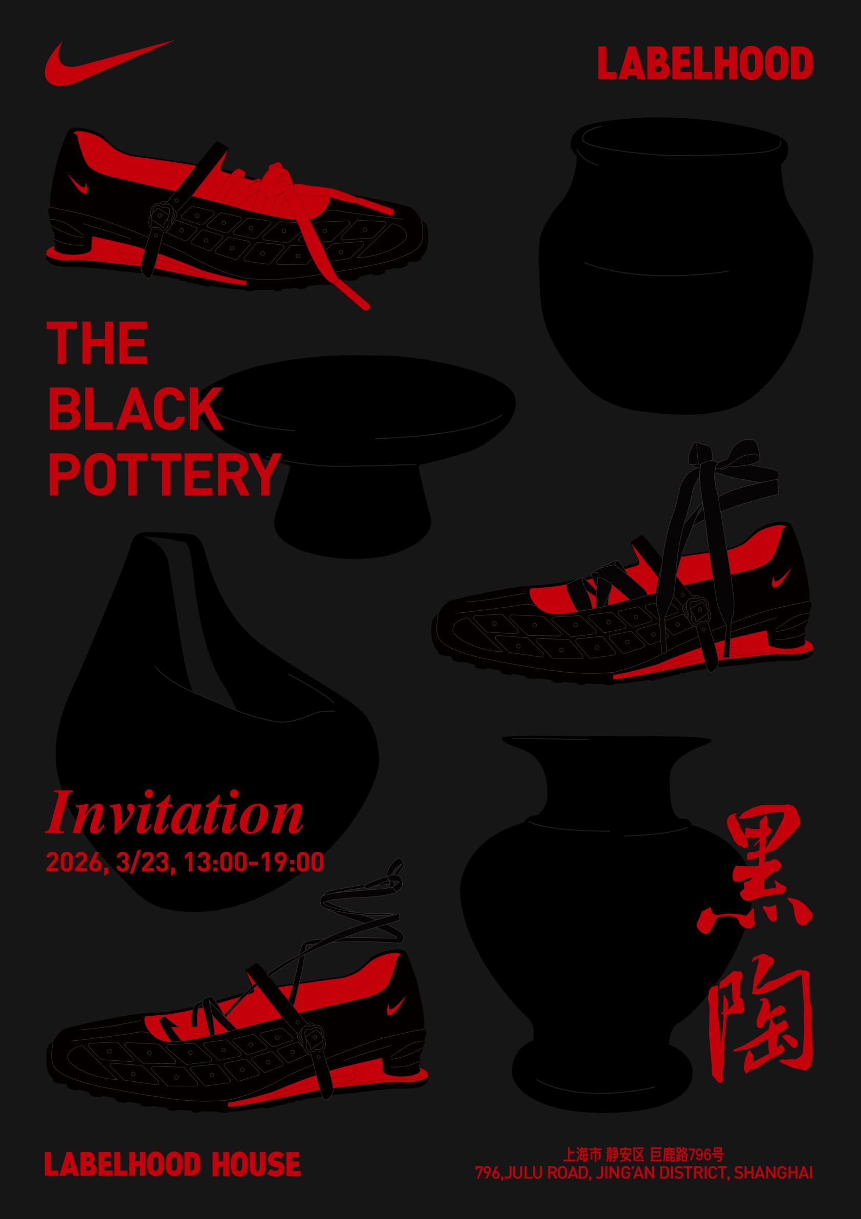 在这样的语境之下,本季围绕「起跳」的表达,也延展至不同层面的实践。蕾虎与 Nike 的合作以另一种方式回应这一命题——双方于 Labelhood House 打造限时「黑陶店」,呈现以景德镇黑陶为灵感的 Labelhood× Nike ShoxZ Calistra 联名鞋款,将东方器物的质感转化为设计语言。鞋款以黑色哑光肌理呈现,呼应黑陶的温润与内敛;从器物到空间,这一合作进一步延展出关于「容器」的理解——承载并非限制,而是让创意得以生长的结构。正如黑陶因花而生变,蕾虎亦在持续的培育与连接之中,让多元设计在此生长与展开。